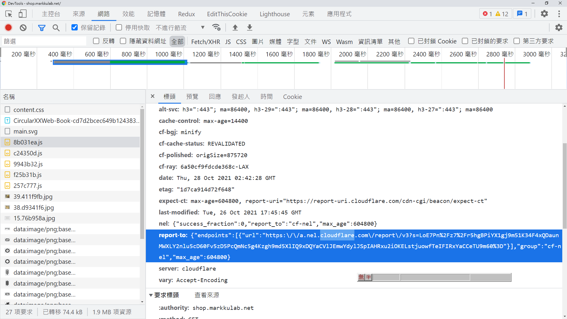 9. 此時你的 request 靜態檔案時,Response header 就會被加料,顯示 Could Flare 相關資訊