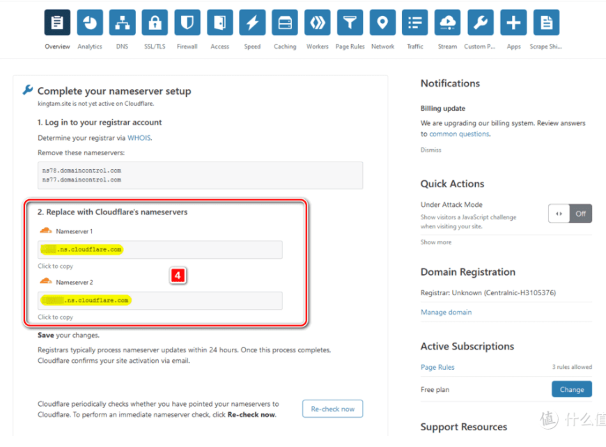 5. 過程中會要求你將 DNS 託管給 Could Flare > 需要到你的 DNS 託管給 Could Flare