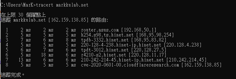 11. 也可以透過 tracert route 看經過那些路由