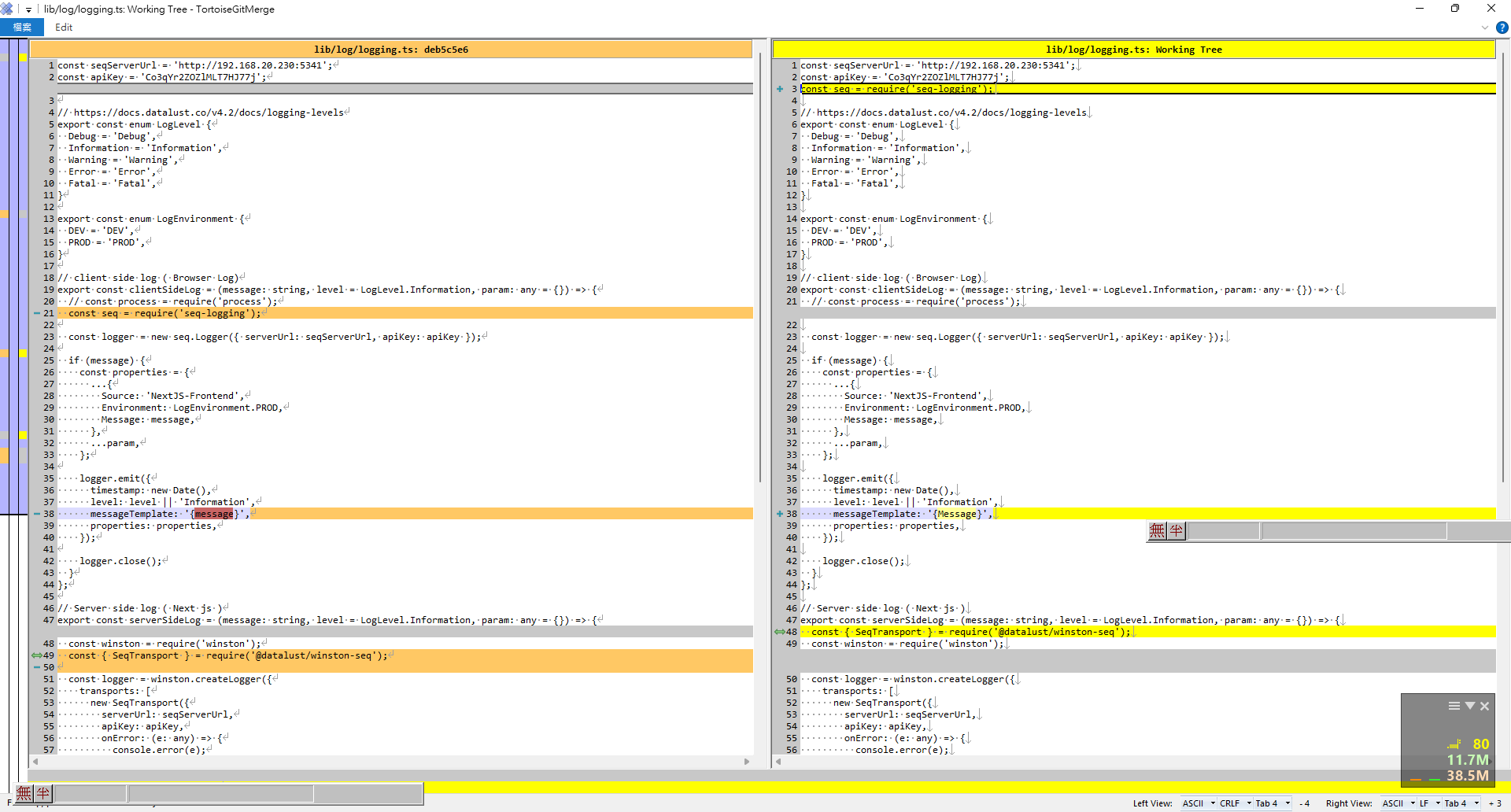 Commit 可以透 Git tortoise 比較程式異動差異。