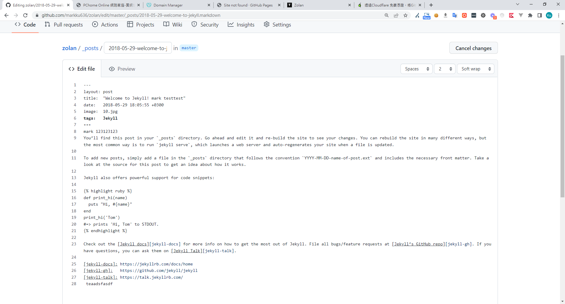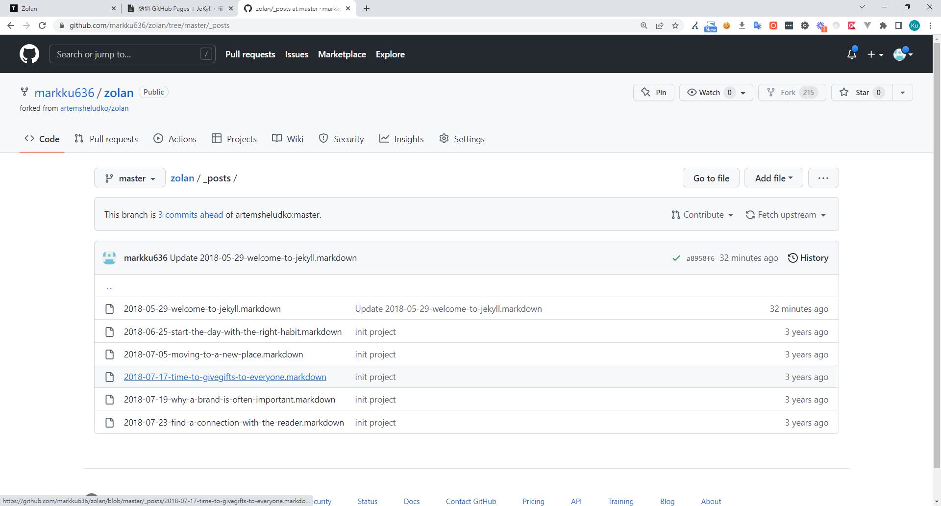 5. 如果新增文章,只你要在 zolan/_posts/資料夾下,新增一樣的檔案,則,就會跑出一篇新的文章。
