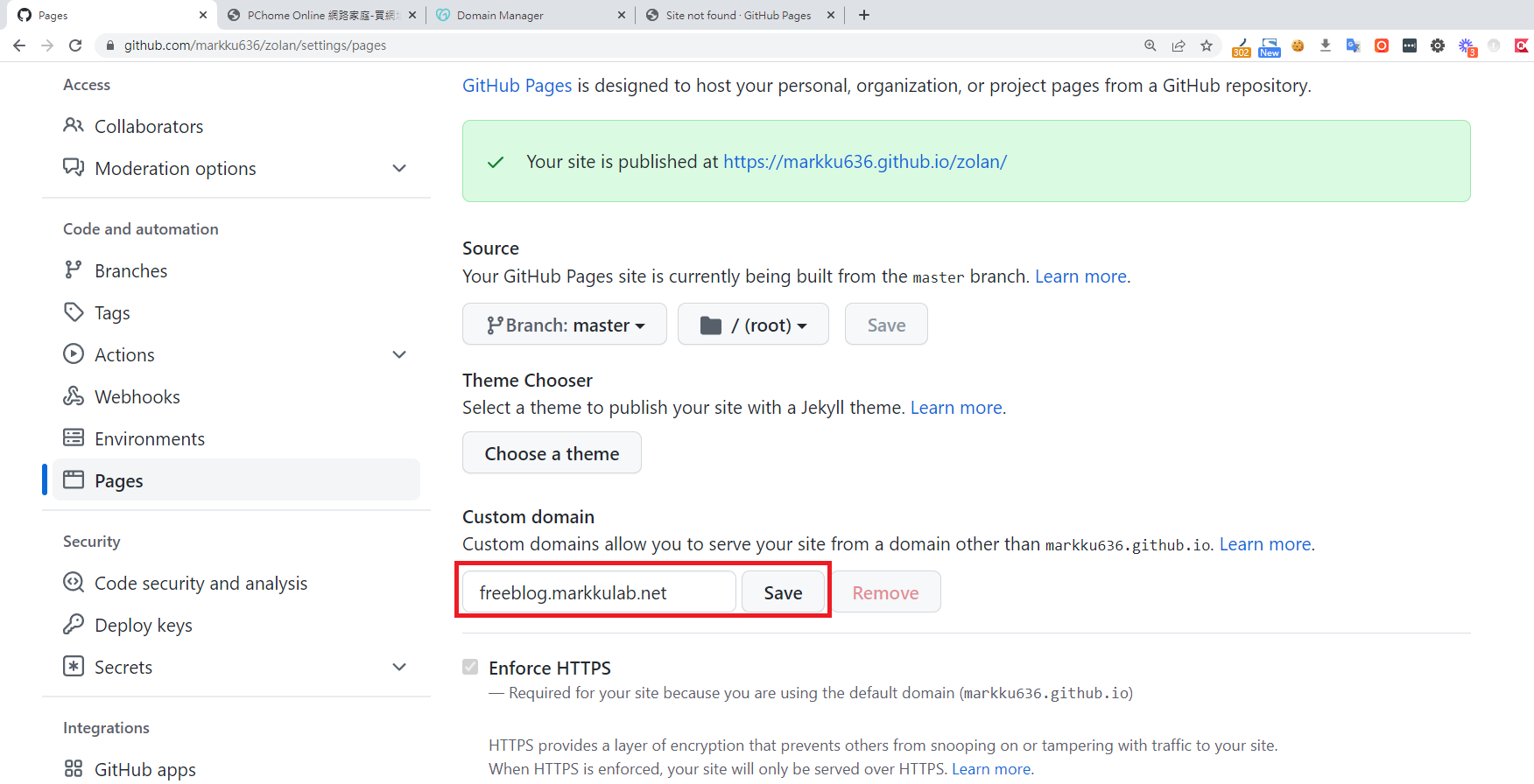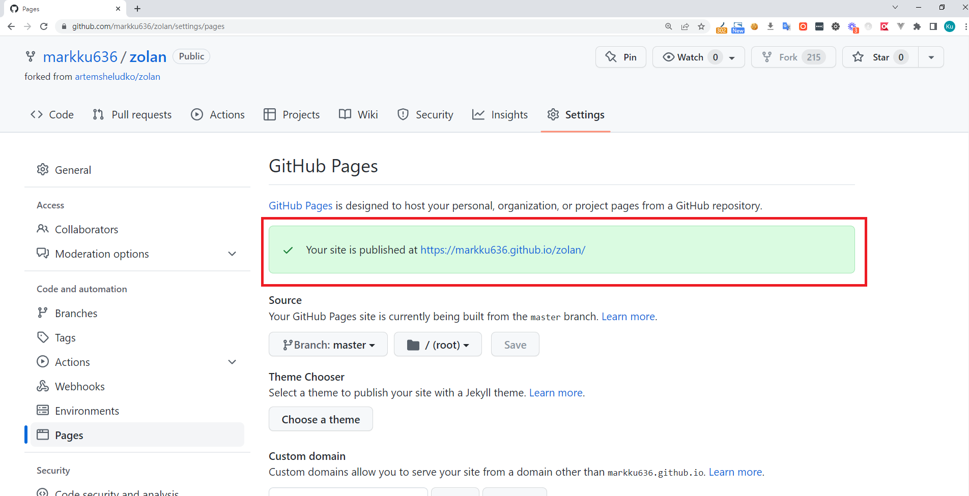 5. 建置部署完, 就會在您的 Github Pages 頁籤中,顯示你的網站網址