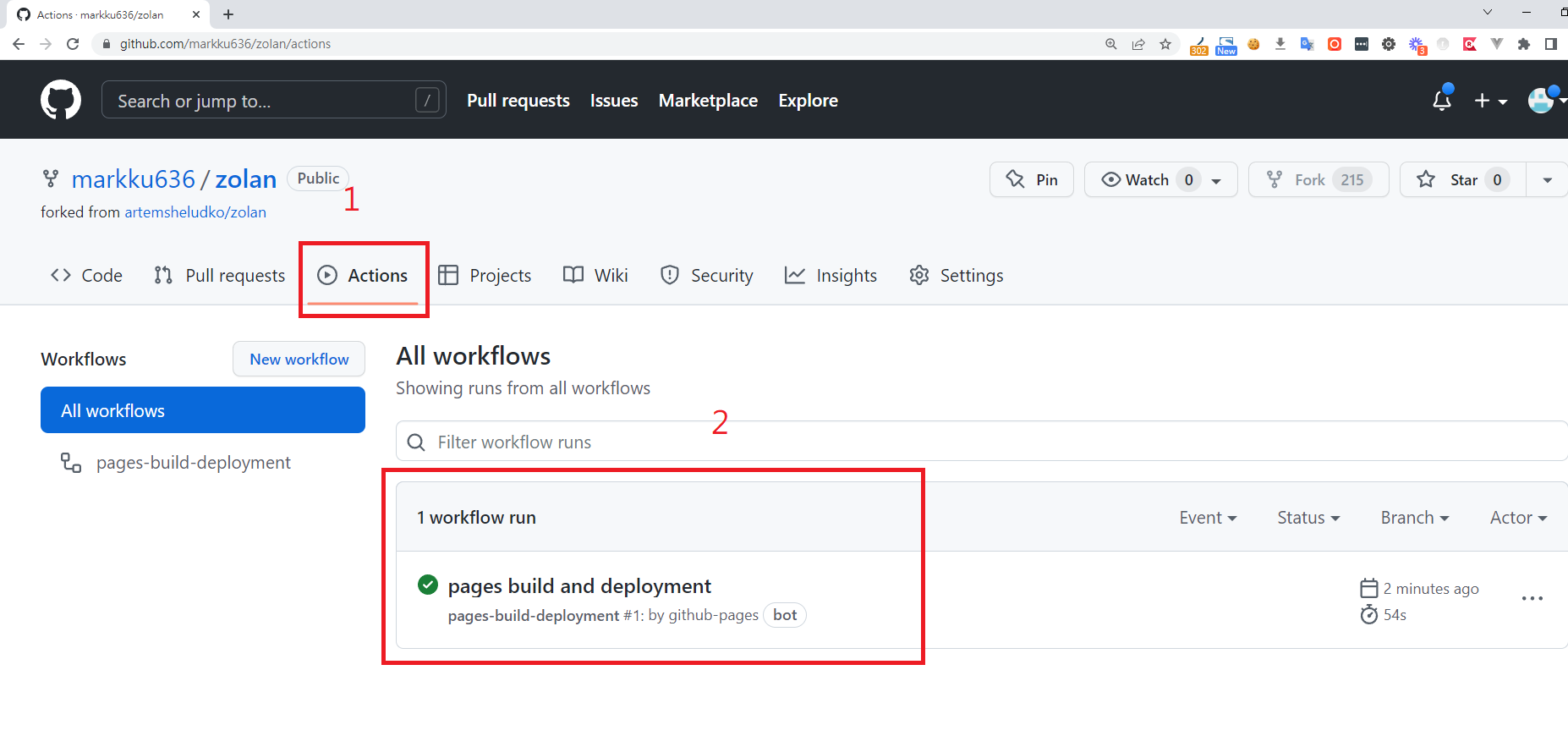 4. Github Action 這時就會開始建置部署,並部署網站
