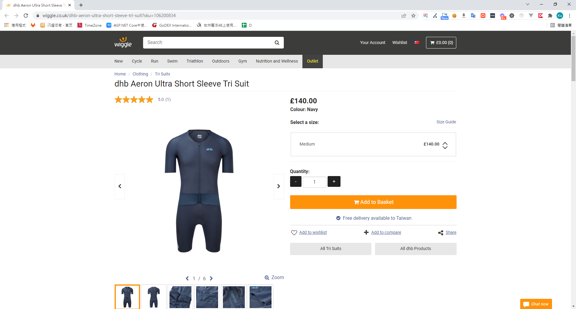因為疫情影響,國內廠商多半剩下零碼的三鐵衣,或版型也都不是我適合的,後來我從 Wiggle 網站 訂了英國 dhb 的三鐵衣,大概等來5天左右就收到貨了。