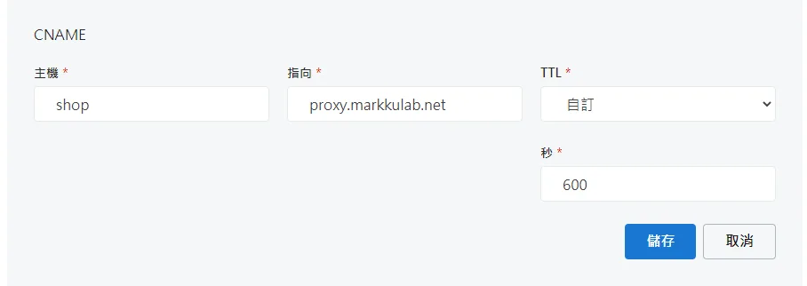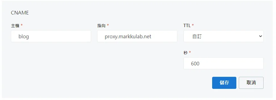挷定 DNS 將 proxy.markkulab.net 指向 FRPS 主機