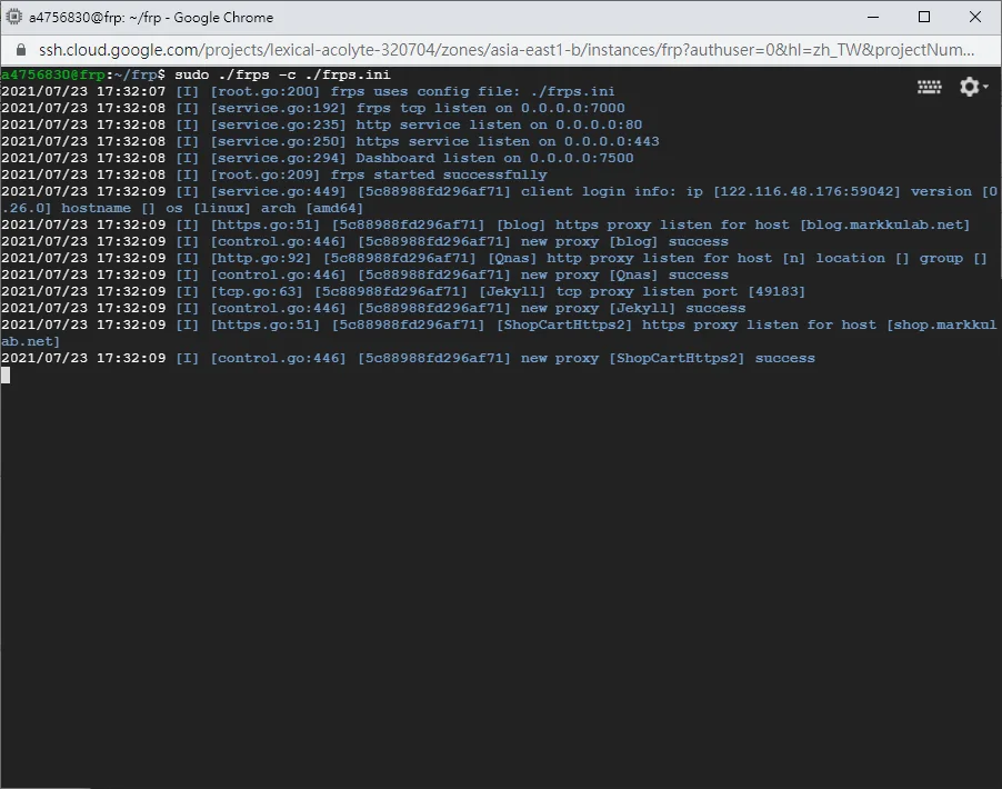 sudo systemctl start frps.service //啟動 FRP Server 服務