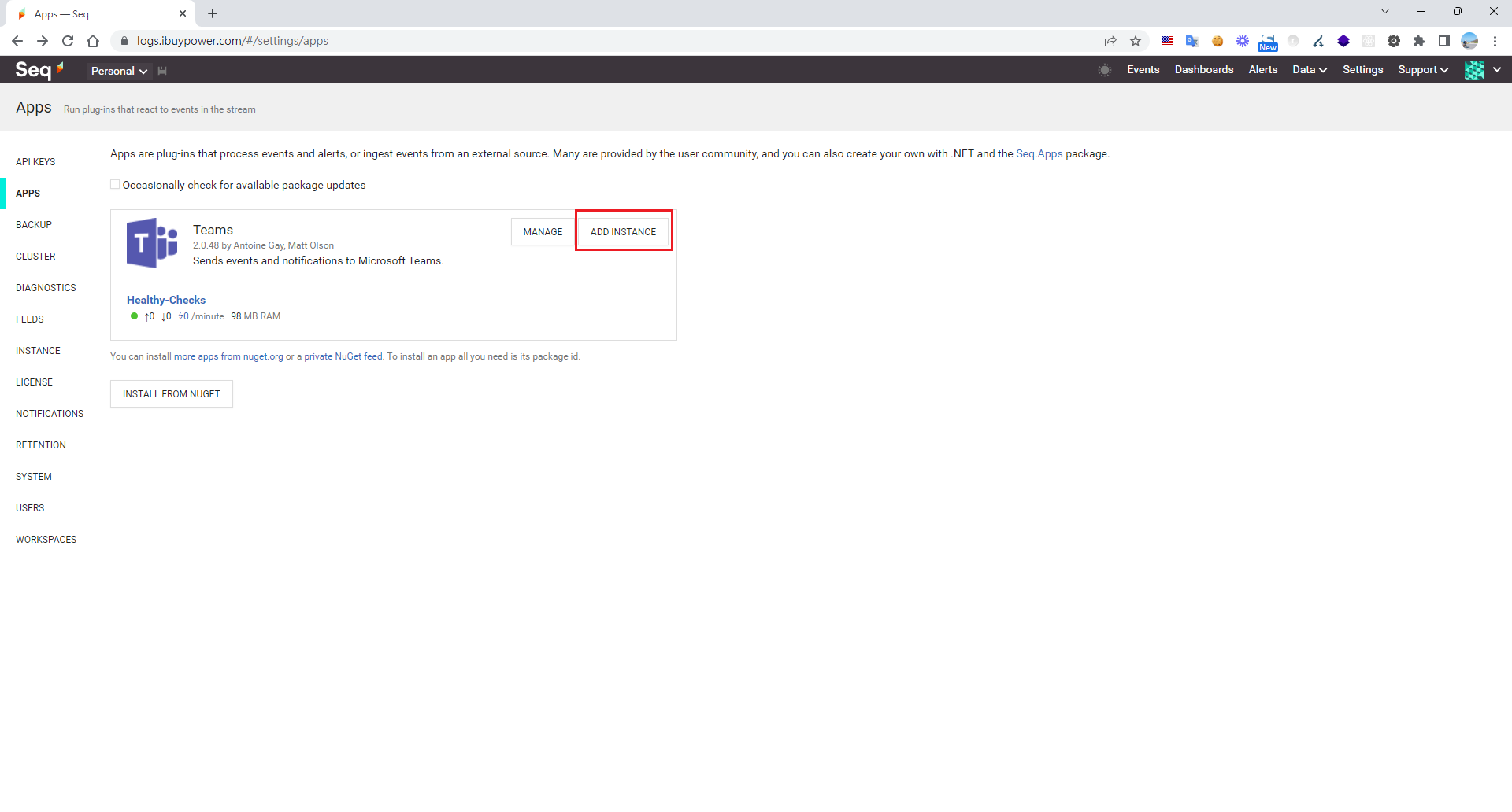 SEQ 並沒有內建通知,所以我們需要安裝 Teams 通知套件
