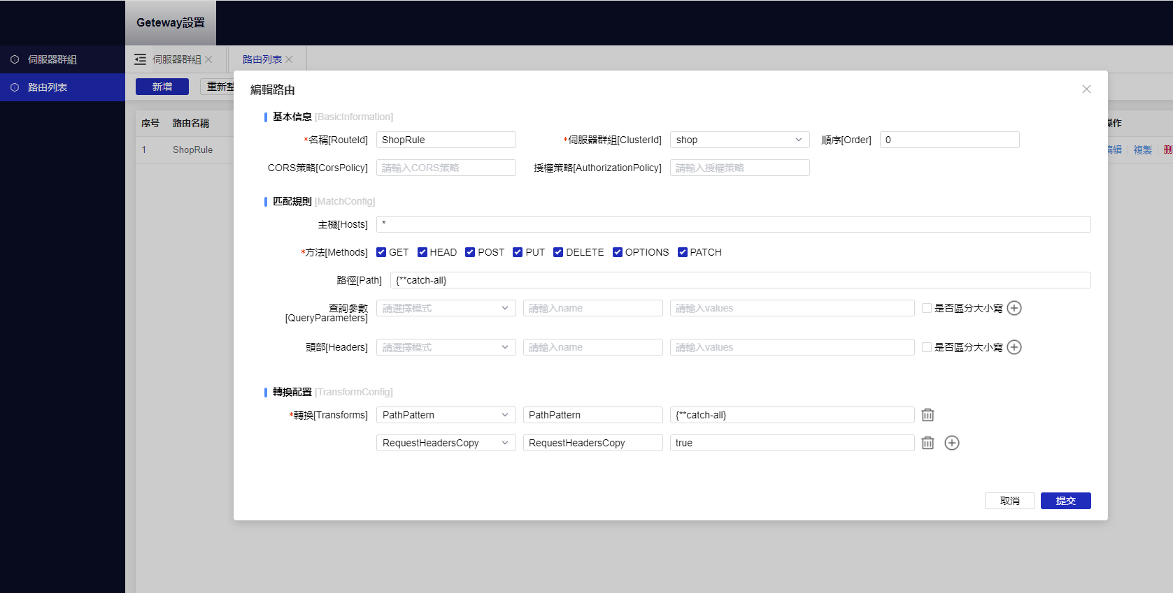 - Api 閘道,動態變換 API 路由